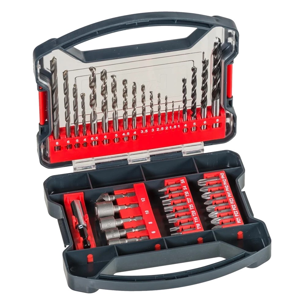 Made of special tool steel and designed with the main focus on high efficiency and precision at work. Ideal for professionals in the field of mechanical equipment repair, wood processing professionals and builders who use solid materials, such as concrete, and natural stone. Much functionality comes as a result of the presence of elements of different nature of drilling. The screwdriver heads also enable the mounting of the elements of the work object, regardless of the standard of the screw used. Professional set, intended for professionals in the fields of metal, wood, concrete and assembly.