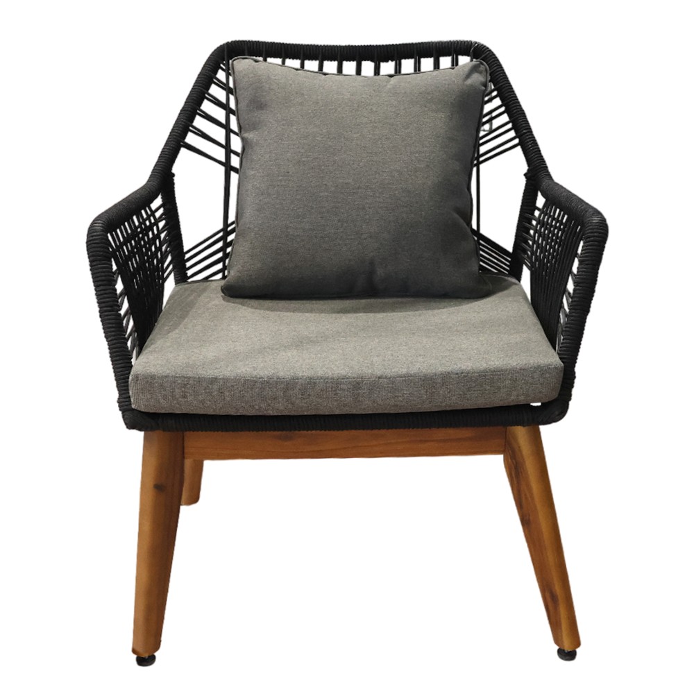 Its metal construction ensures stability and long-lasting durability, while the acacia wood legs give a natural and warm touch to the design. The legs are level/dislevel adjustable thanks to the leg register mechanism. Its high quality textile is carefully selected to ensure a comfortable living experience. The seat and support cushions are made of 100% polyester 230gr, whose covers are zippered to facilitate their washing.