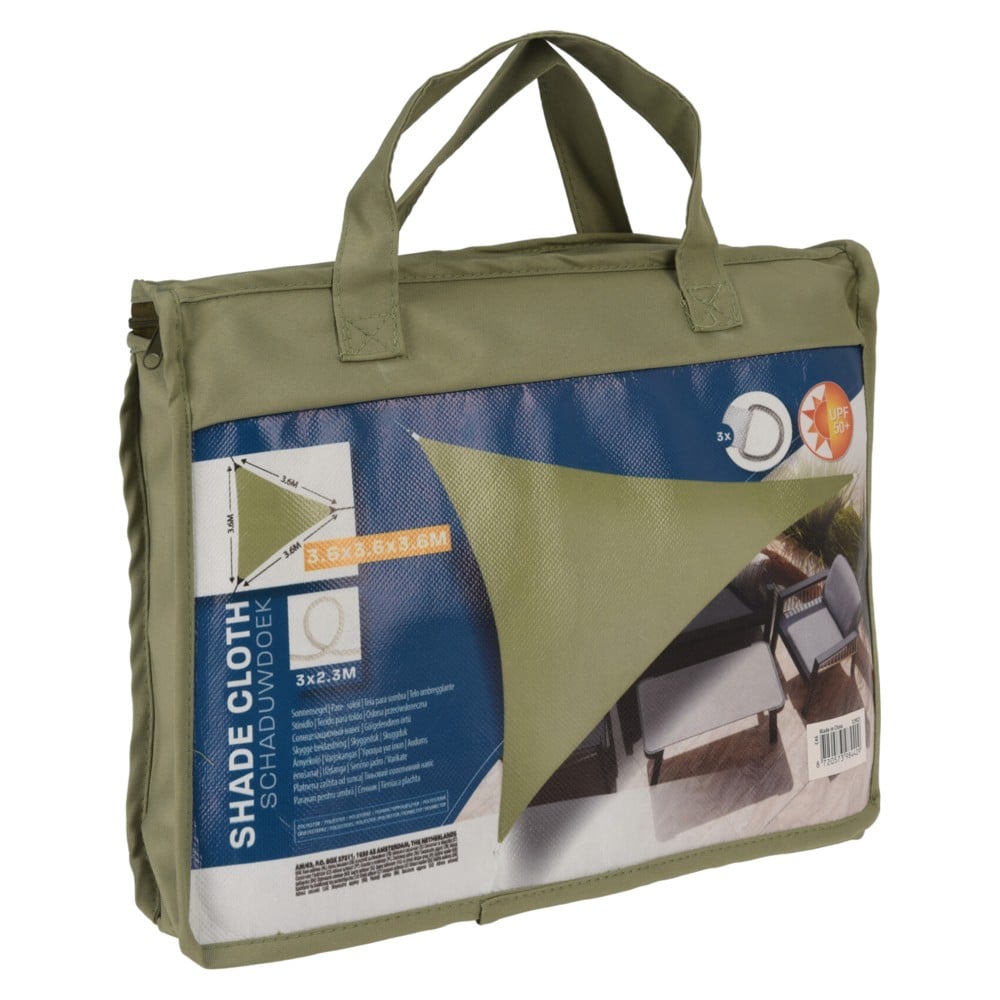 Canopy sail awning sunscreen triangle 3.6 x3.6 x 3.6m in steel blue The sail is an excellent protection from the sun. It is ideal for gazebos, terraces and balconies. Made of strong, durable polyester. Technical specification: dimension: 3.6 x 3.6 x 3.6m shape: triangle color: steel grey 3 ropes for hooking - each 2.3m long with waterproof coating