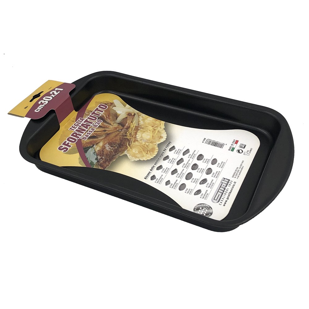 Pans for various dishes such as meat, fish, dough products, and others. Aluminum material with anti-stick coating, very good quality of Italian products, comes with a competitive price.