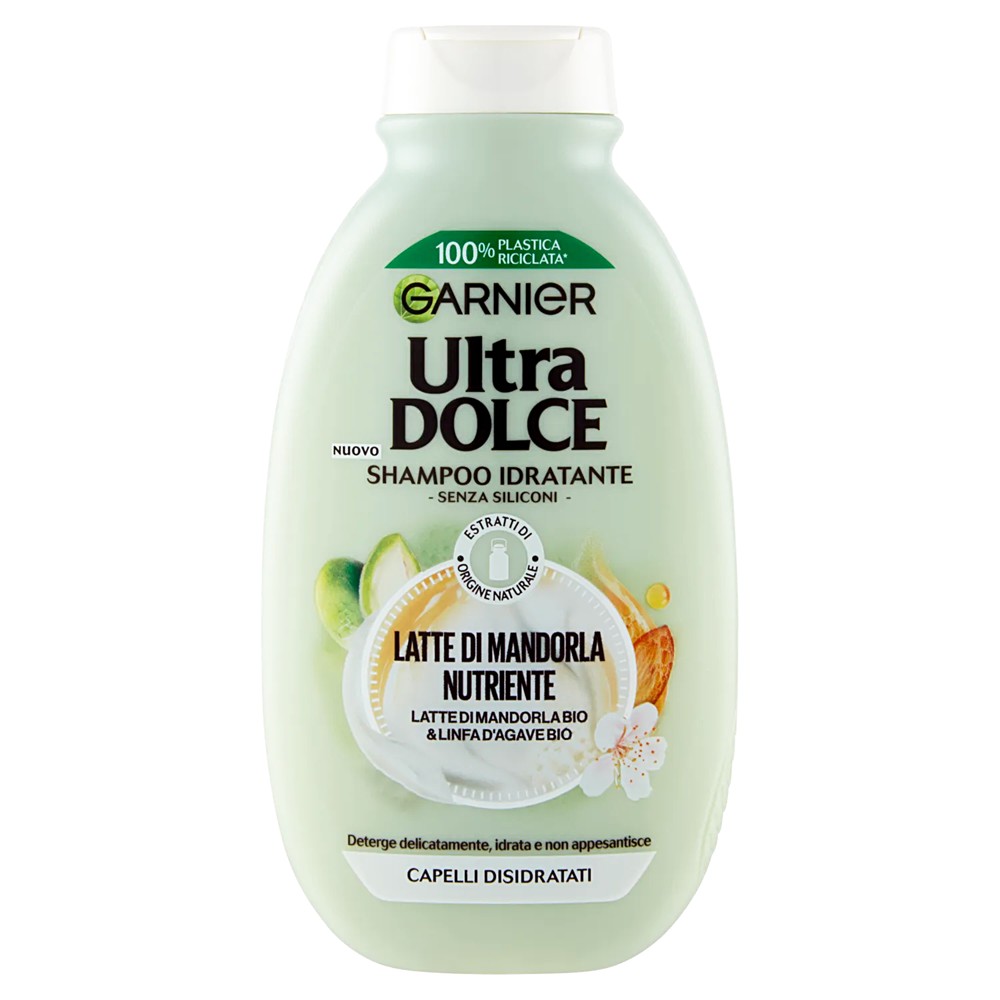Garnier Ultra Dolce moisturizing shampoo with almond milk. The most nourishing medicine for softer and more hydrated hair. Discover the power of nourishing organic almond milk. Together, they give life to a hydrating formula that doesn't weigh down and revitalizes hair. Use: Dehydrated hair.