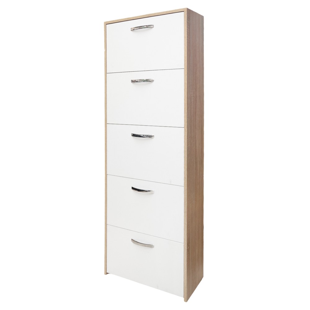 Shoe cabinet, melamine, sonoma/white, 60x25xH165 cm
