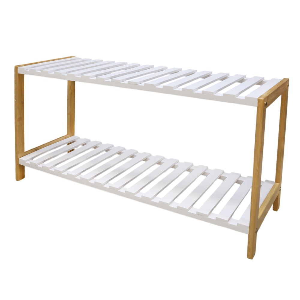 Are you tired of the lack of order in your hallway or the bathroom from carelessly thrown shoes? The ''Turin'' shoe rack offers you a practical but also aesthetic solution. Designed in highly moisture-resistant bamboo material in white and 2 wood-colored shelves. You can say goodbye to clutter with the ''Turin'' shelf.