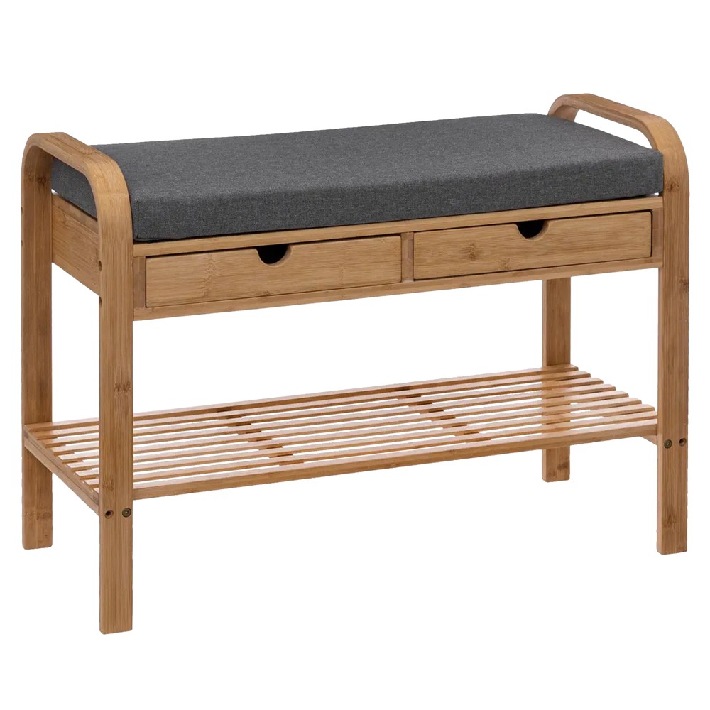 Shoe rack with bench, Jano, with 2 drawers, bamboo, brown/grey, 74x34xH55cm