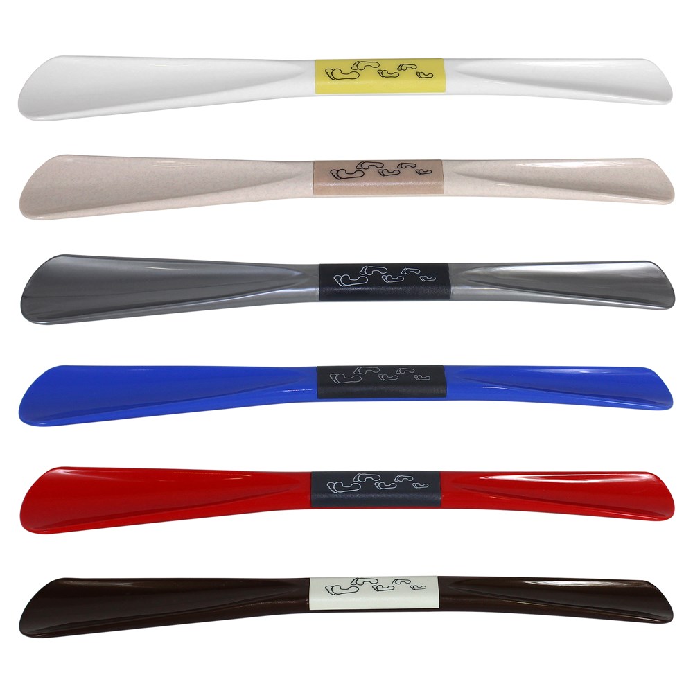 The long handle plastic shoe horn helps users slide shoes on without bending. This adapted shoe horn is constructed of break resistant plastic . The curved design is recommended by occupational therapists to help make putting on shoes easier. This durable plastic shoe horn is longer for people who have difficulty bending to put on shoes.