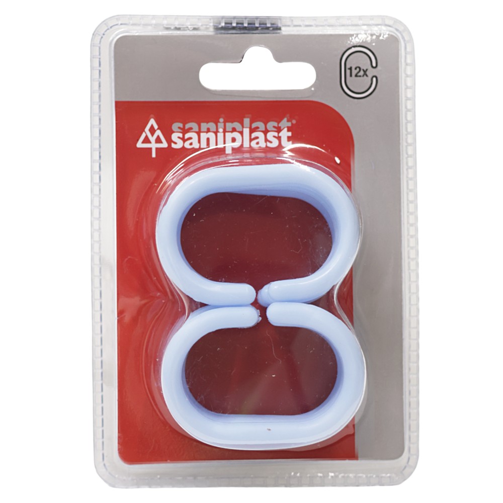Shower curtain rings, plastic, white, 12 pcs