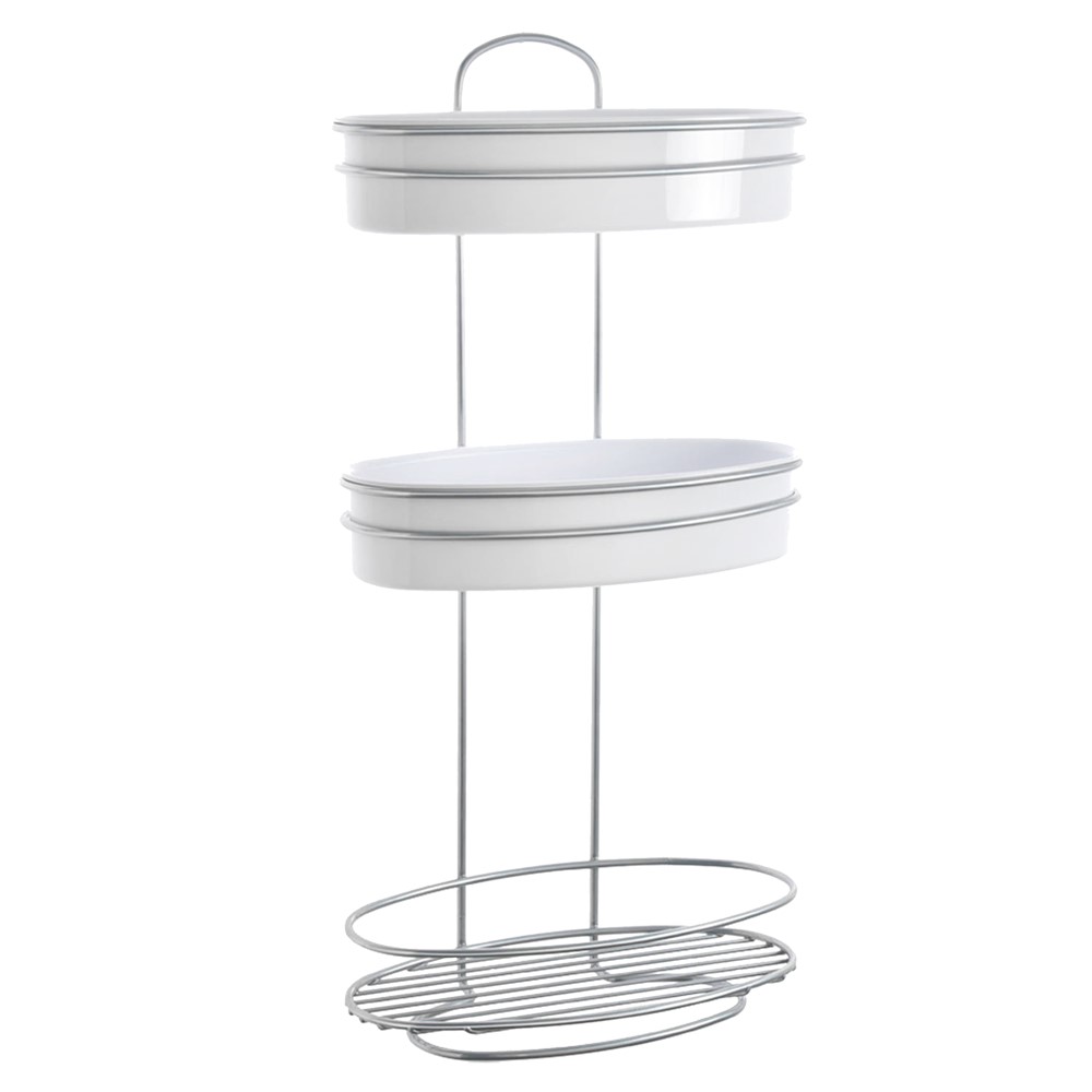 The Orbit Oval Rack can be placed standing or hung on the wall. This Orbit Rack has 3 floors. One open rack and two oval white plastic trays. The dimensions of the Metaltex Orbit Oval rack are 26x13x53 cm. The Orbit Rack is protected by the new and exclusive Chrometherm coating with a chrome appearance. The latest result of Metaltex research & development. Chrometherm is an eco-solution that is better for the environment.