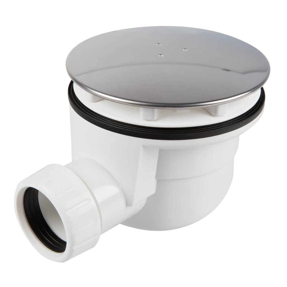 The round-shaped shower tray consists of a plastic structure and a chrome-plated cover. The threaded discharge measures 1-1/2''. The fillet gaskets are conical and the flange is 40 mm. This plastic, screw-on base plate is easy to install and offers maximum safety.