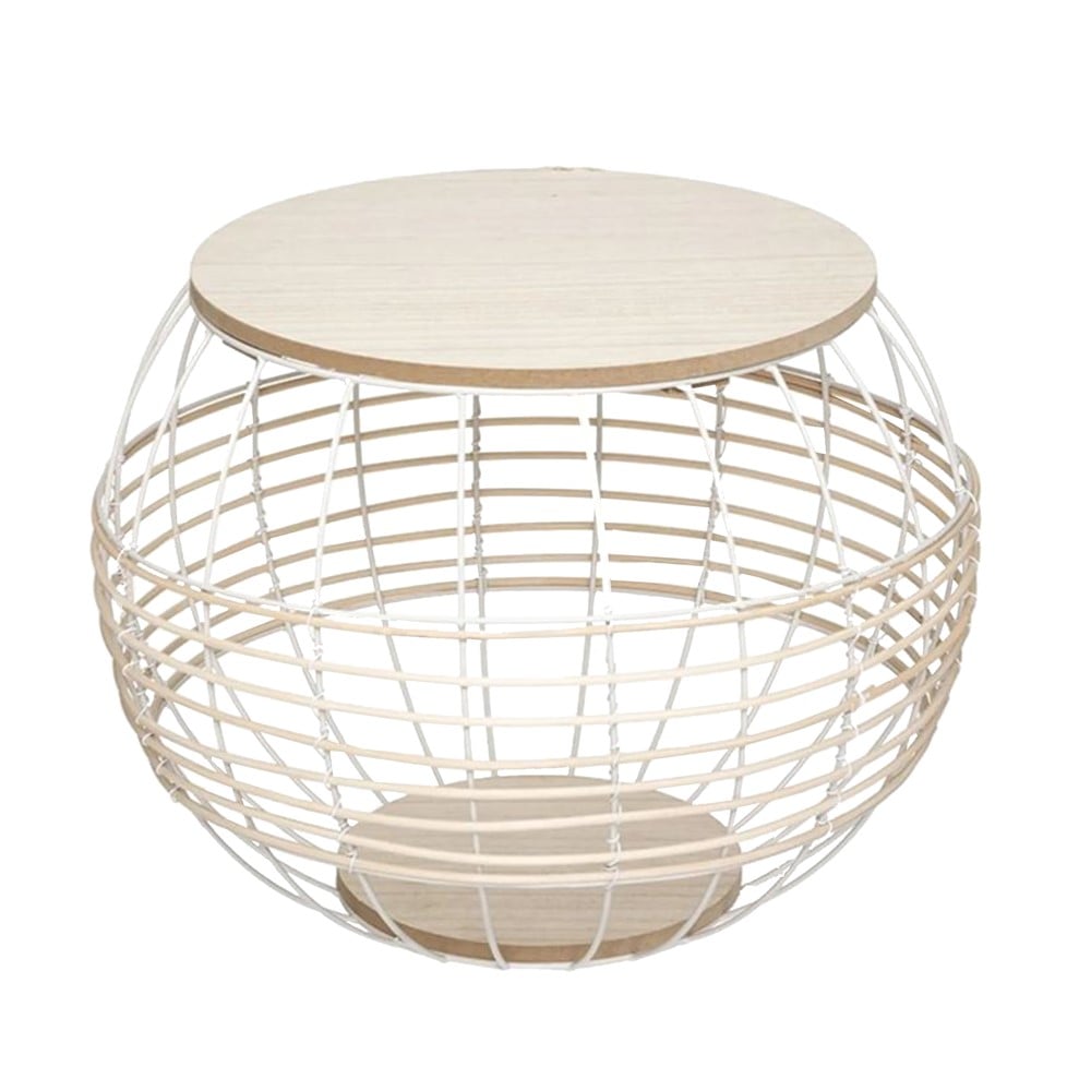 Side table, M, Juline, metal frame, wooden tabletop, white/beige, Ø41 xH31 cm