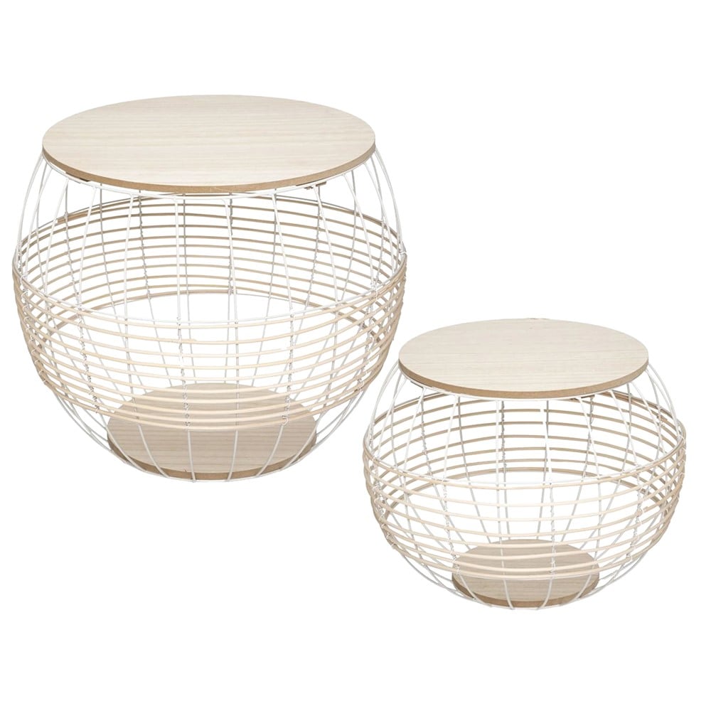Side table, set of 2 pcs, Juline, metal frame, wooden tabletop, white/beige, Ø41 xH31 cm; Ø50 xH41.5 cm