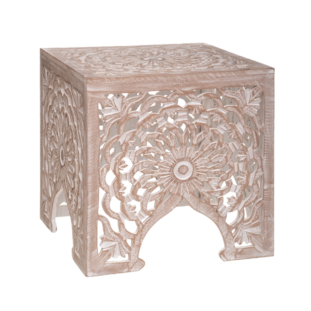 This is a small side table specially designed to be placed in confined spaces or to be used as a mobile side table. It can be placed in living rooms, reading areas, or anywhere you want to add an extra surface. It can be used to place glasses, books, or other decorative objects. The natural look of wood and its simple shape make it suitable for different styles of your premises.