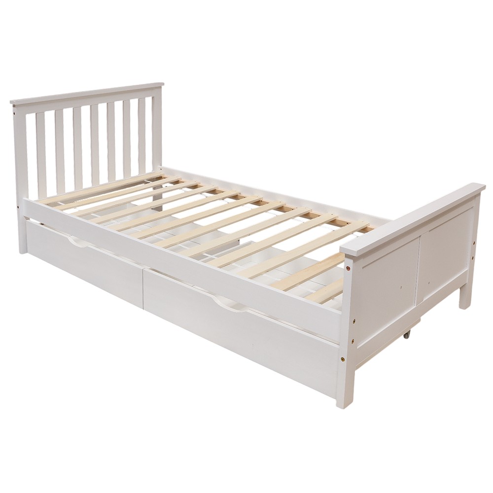 A good bed is the key to a quality sleep. This bed is an ideal solution for your homes, also offering a nice furniture in the bedroom. It comes in single sizes, made of a perfect combination of fantastic pine wood and mdf material, making it extremely resistant. With a modern style that will fit perfectly with your bedroom. The white color gives it a luxurious and sophisticated look. A bed like this will turn your bedtime into a moment of relaxation and comfort.