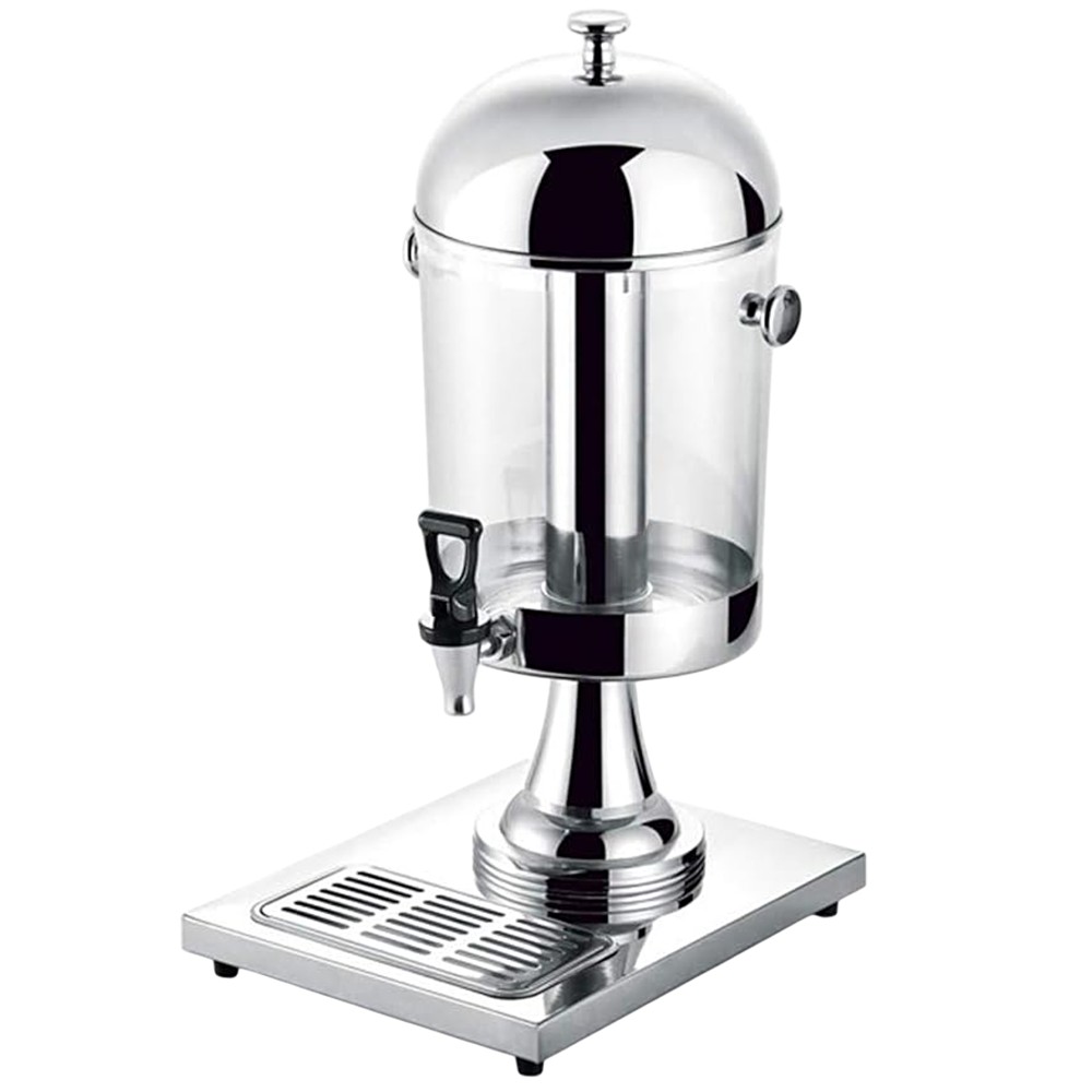 This single juice dispenser is an elegant and practical appliance, designed to serve fresh juices in hotels, restaurants, buffets, and various events. With its 5-liter capacity, it's ideal for keeping juices at the appropriate temperature and serving them attractively. The combination of stainless steel and plexiglass offers durability, hygiene, and transparency. The easy-to-clean materials ensure maximum hygiene and safe use. The juice dispensing mechanism is simple and easy to use, minimizing spills and mess. It's suitable for various juices, such as orange juice, apple juice, water, etc.