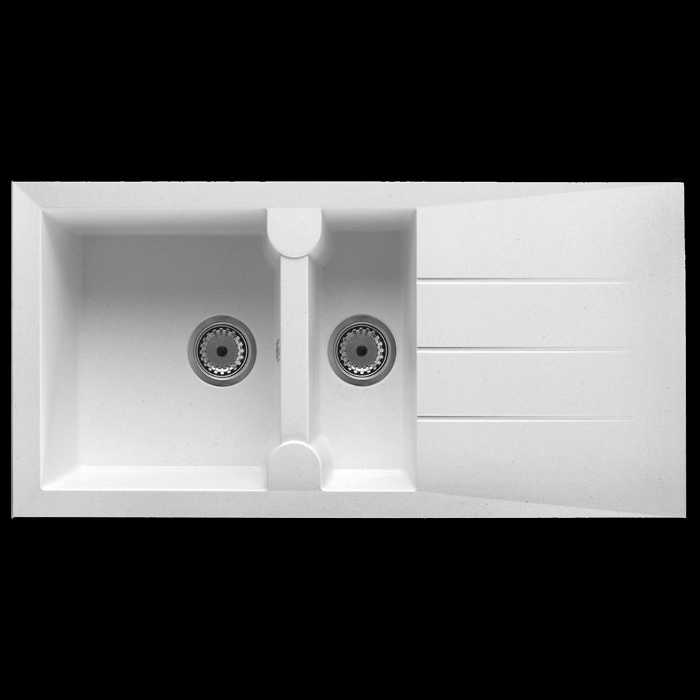 You're reviewing:Sink, 2 bowls, Alineo, polyester resin 30%; mineral fillers and glass fibres 70%, mottled white, 100x50xH21 cm