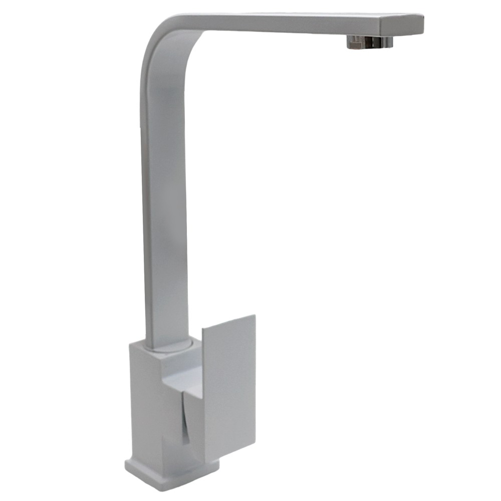 This sink faucet is an elegant and modern choice for kitchen environments. Its style is characterized by its square shape, which gives it a perfect and clean look. It is made of bronze, a material suitable for wet environments. Its color is white, which reinforces the feeling of hygiene and modernity. Its flexible pipes are 1/2" in diameter, making it suitable for an easy and practical installation. This faucet offers an excellent combination between advanced style and high functionality, making it an excellent choice. for those who value aesthetics and quality in their kitchen equipment.