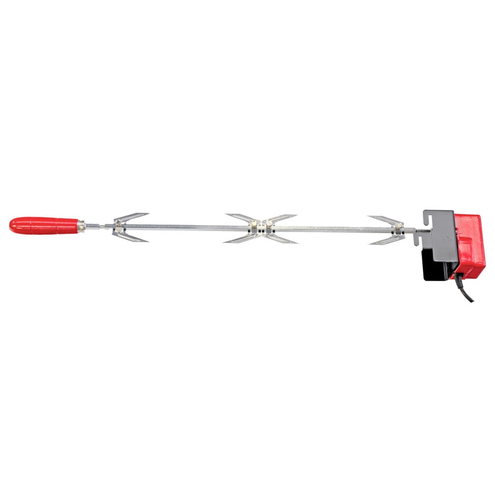 Barbecue skewer, made of stainless steel material, size 75 cm. It is used to roast chicken, meat on skewers, poultry, etc. The set consists of the rod and the electric motor.