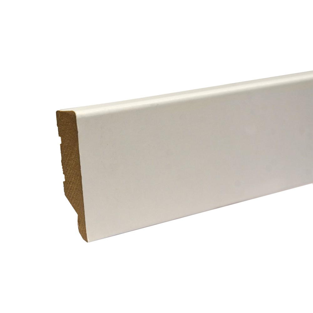 MDF skirting board perfectly covers the expansion joint of the floor. It is covered with wood-patterned foil and is secured with the mounting parts provided. Matching corners and edgings, skirting boards available.