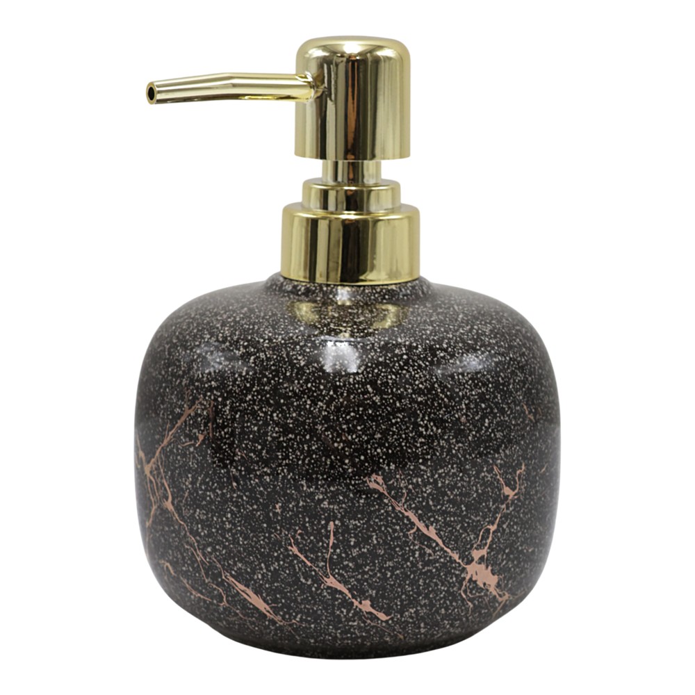 This black ceramic soap dispenser is the perfect choice to give your bathroom a modern and elegant look. Durable and moisture resistant, it ensures easy operation and use. Its practical pump allows for hygienic and controlled soap dispensing, making every use simple and efficient. The black color adds a minimalist style to the bathroom, giving the space a modern and refined atmosphere.