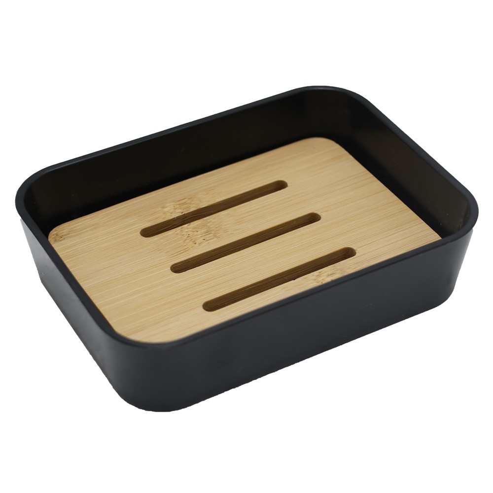 Soap holder, plastic/bamboo, black, 12x8.5xH3cm