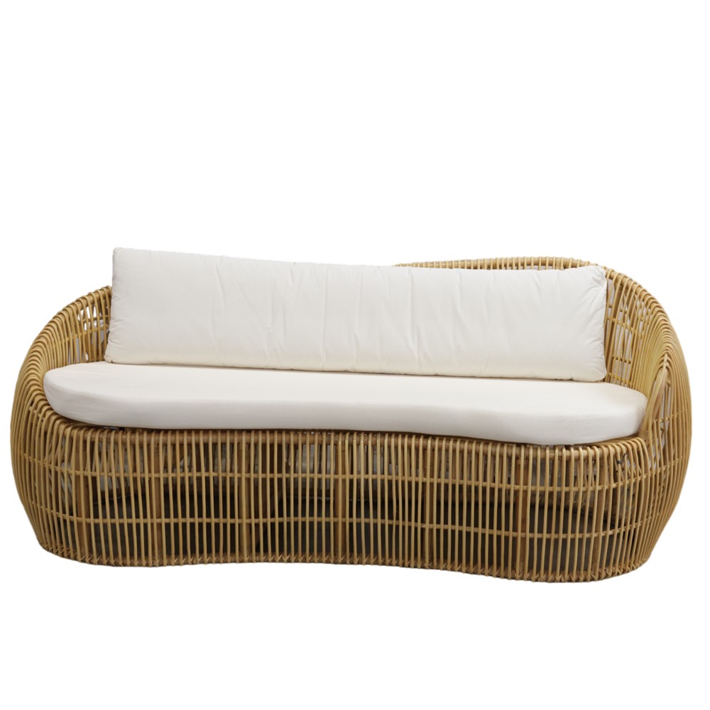 Constructed of natural rattan, a harmonious blend between comfort, style and durability. Perfect for indoor and outdoor relaxation. Each element is handcrafted by artisans, ensuring elegance and lasting longevity. Thsi elegant sofa, adds warmth and character to any space.