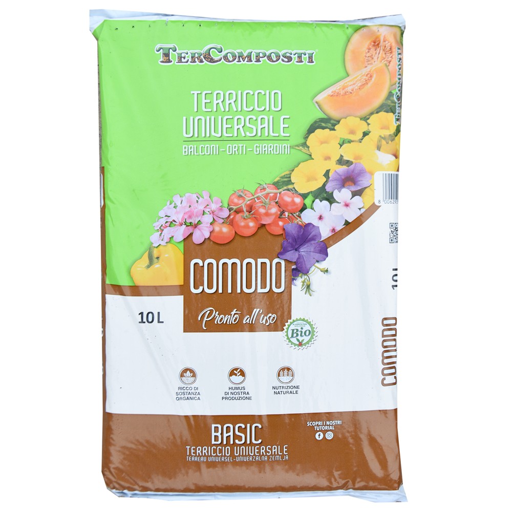 Is a universal soil, allowed in organic farming, created to meet the needs of flower and above all vegetable lovers. Although its main use is for filling pots or holes (for transplanting into the ground), given the rich presence of humified organic vegetable matter and a balanced ratio of macro and micro elements, naturally present in the organic matrix, mixed with soil, it is also very performing as a soil conditioner, thus creating an excellent growing medium for sowing and transplanting vegetables and flowers, with the exception of acidophilic plants. For the use of this in pots it is advisable to water abundantly the first time and after the first 3 weeks from transplanting start with the fertilizations.