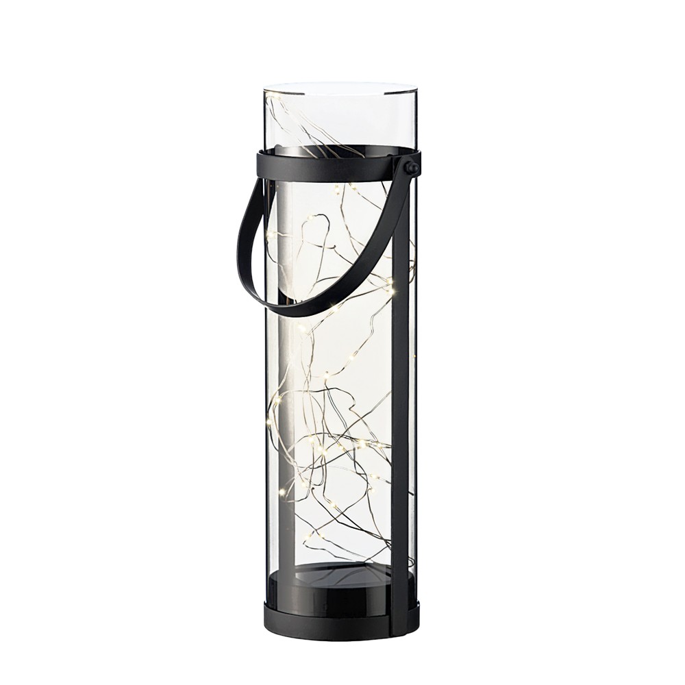 Solar panel light, microLED, warm white, 10x34cm, metal/glass, black