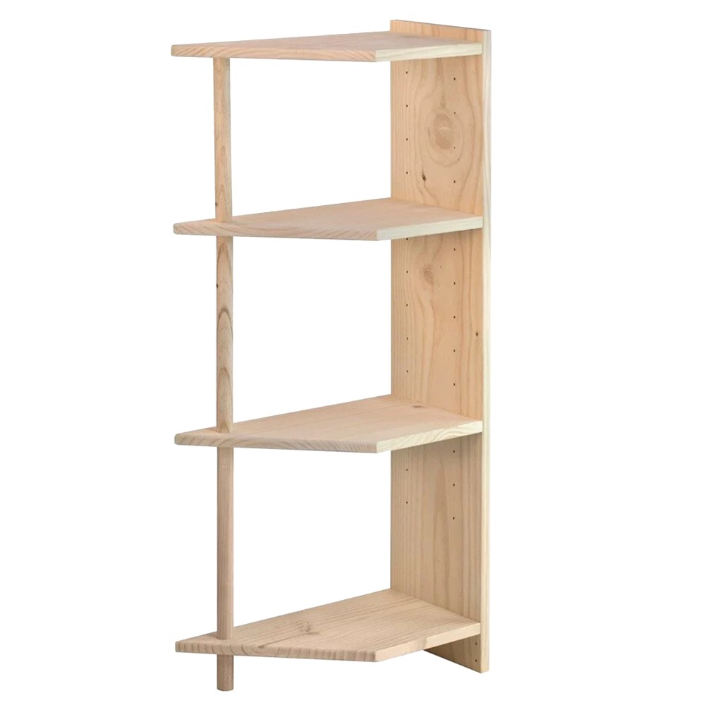 This functional and decorative corner shelf or corner bookcase has 4 height-adjustable shelves and measures 50cm wide and 120.7cm high. But you can choose the other GALA corner shelf with 6 shelves , 184.7 cm high and the same width. Whichever height you choose, the corner shelves perfectly adapt to the angle of the corner.