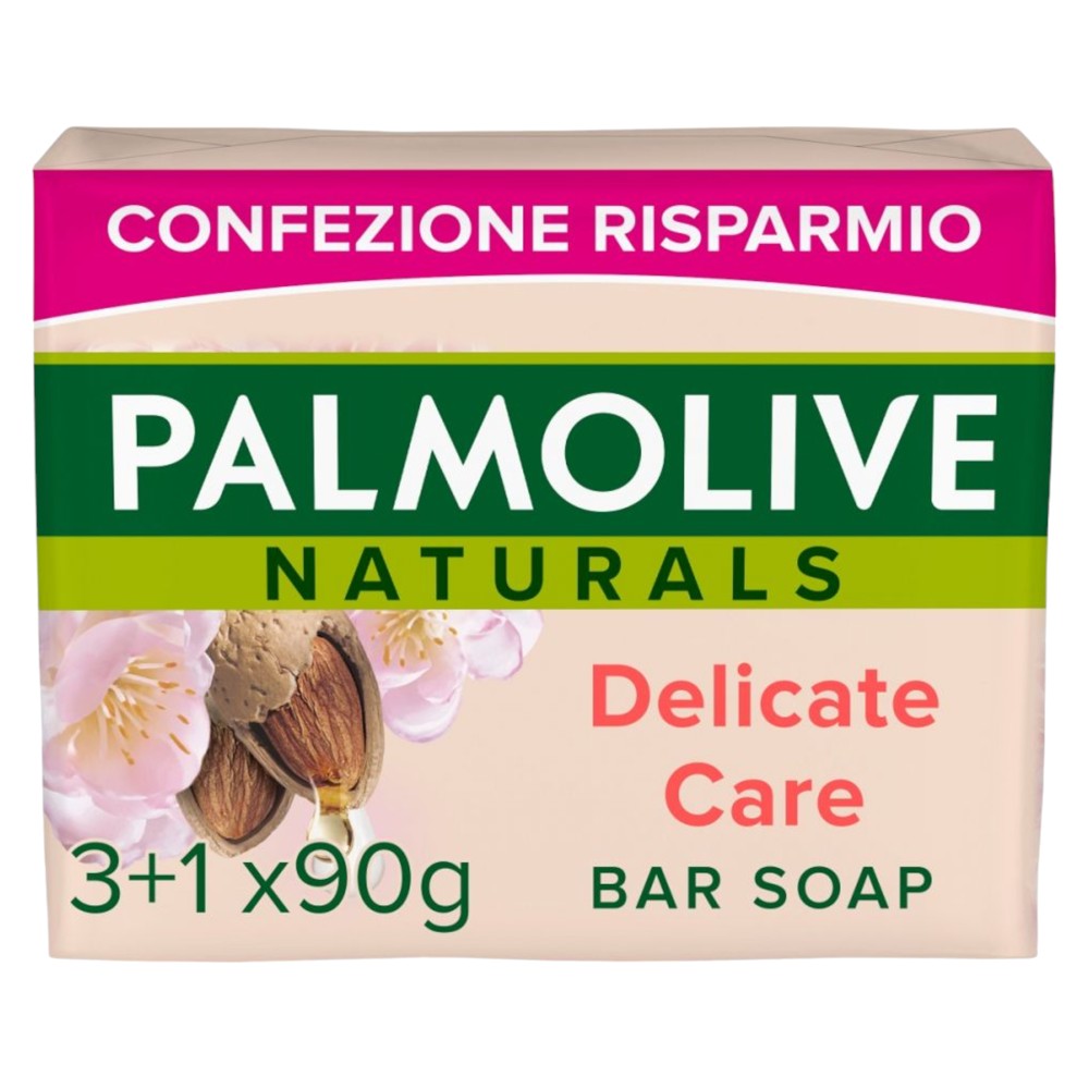 Palmolive solid soap which comes in 4x90 gr packaging. Palmolive Delicate care is rich in almond extract. This soap helps hydrate the skin, leaving it feeling soft and silky.
