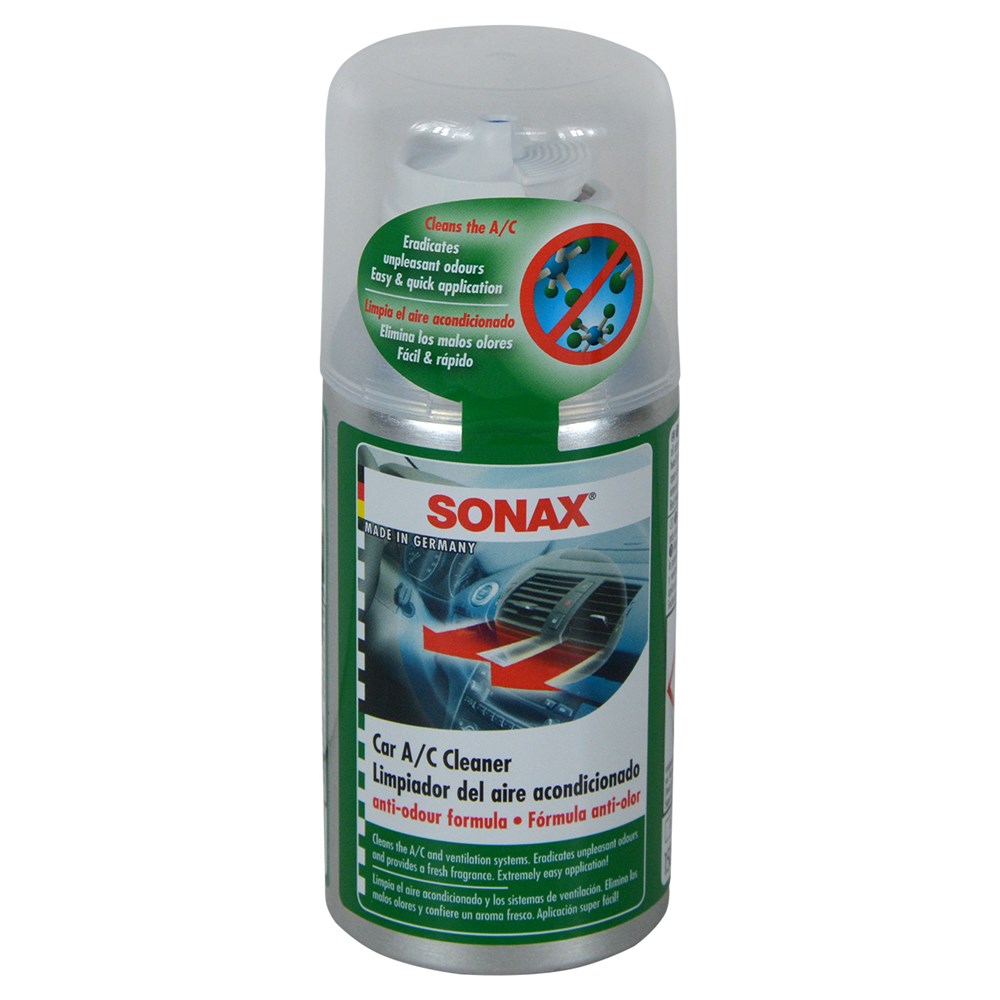 Air conditioners are ideal media for bacteria, mildew and other germs. These can cause musty smell and trigger allergic reactions. SONAX Car A/C Cleaner Green Lemon quickly and easily disinfects ventilation systems and evaporators. It eliminates 99.9 % of bacteria, mould, and other microorganisms, thus preventing possible allergic reactions. Removes unpleasant smells its refreshing Green Lemon scent produces a pleasant atmosphere in the car. Particularly easy and quick application.