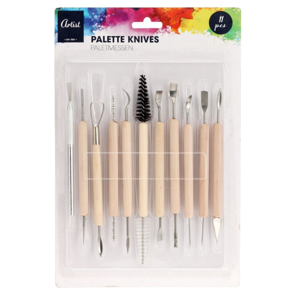 The 11-piece pallet cutting knife offers a wide range of different knives and tools. The knives are comfortable to hold thanks to the beautiful wooden handle. Perfect for every artist big and small! Features: 11 piece set Various knives and tools Pleasant wooden handle