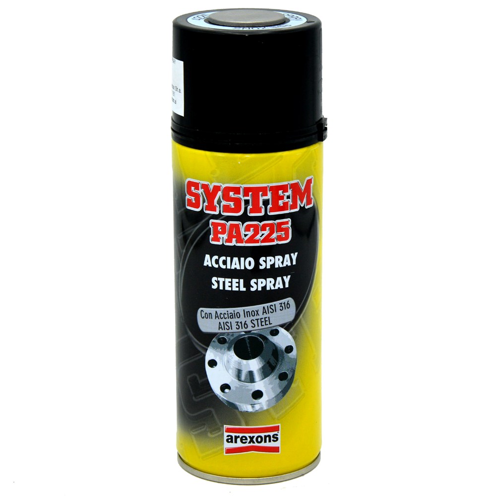 Arexons PA225 steel spray system. Restores and protects surfaces in steel, iron, zinc and cast iron scraped by welding, welding. It resists corrosion, atmospheric agents, acid rays. This gives a look very similar to steel.