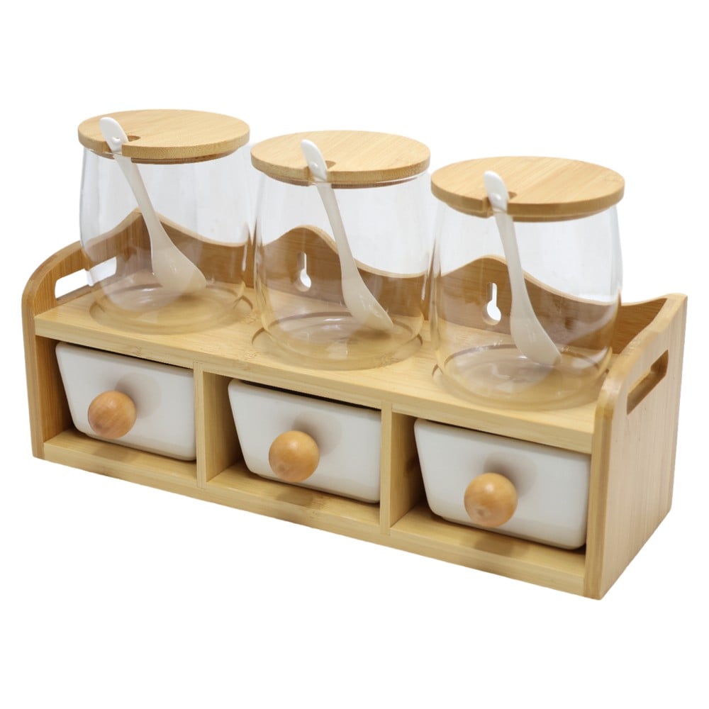 Spice Holder (PK 6), glass/bamboo, transparent/brown, 10x17x31 cm