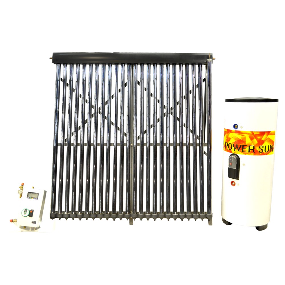 Integrated solar water heating system with a capacity of 300 liters. The system includes: 300 l bolier, 30 vacuum tubes, panel support, distribution tank as well as panel control frame.