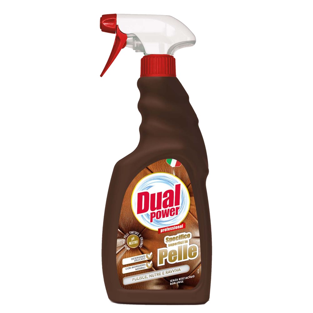 Spray cleaning detergent, professional quality, with solvent-based formula, with natural ingredients and neutral pH level, which is used for cleaning leather furniture surfaces and chimney glass surfaces, without rinsing. This product cleans grease or ink stains, nourishes skin fibers and restores skin color.