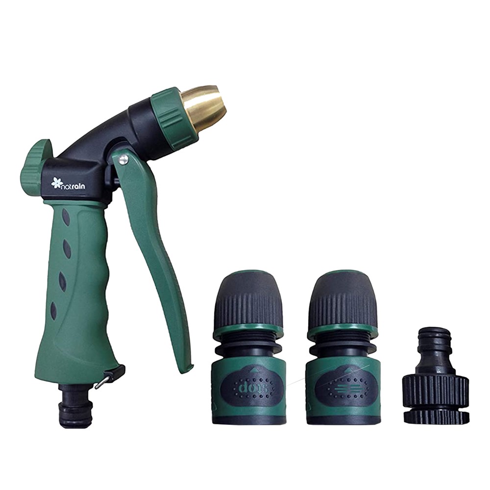 Spraying gun for plants, with appropriate fittings for fitting to standard irrigation pipes and taps. Constructed of metal structure and plastic cladding. Supports the grip part with soft rubber, for convenience and comfort during irrigation. Bronze metal, makes it impossible to rust during years of use. The various reducers enable the adaptation and fixing of this pistol in the standard irrigation pipes as well as the connection of the tap-pipe and the pipe-pistol, with just one click. Ideal for the maintenance and further development of your green space.