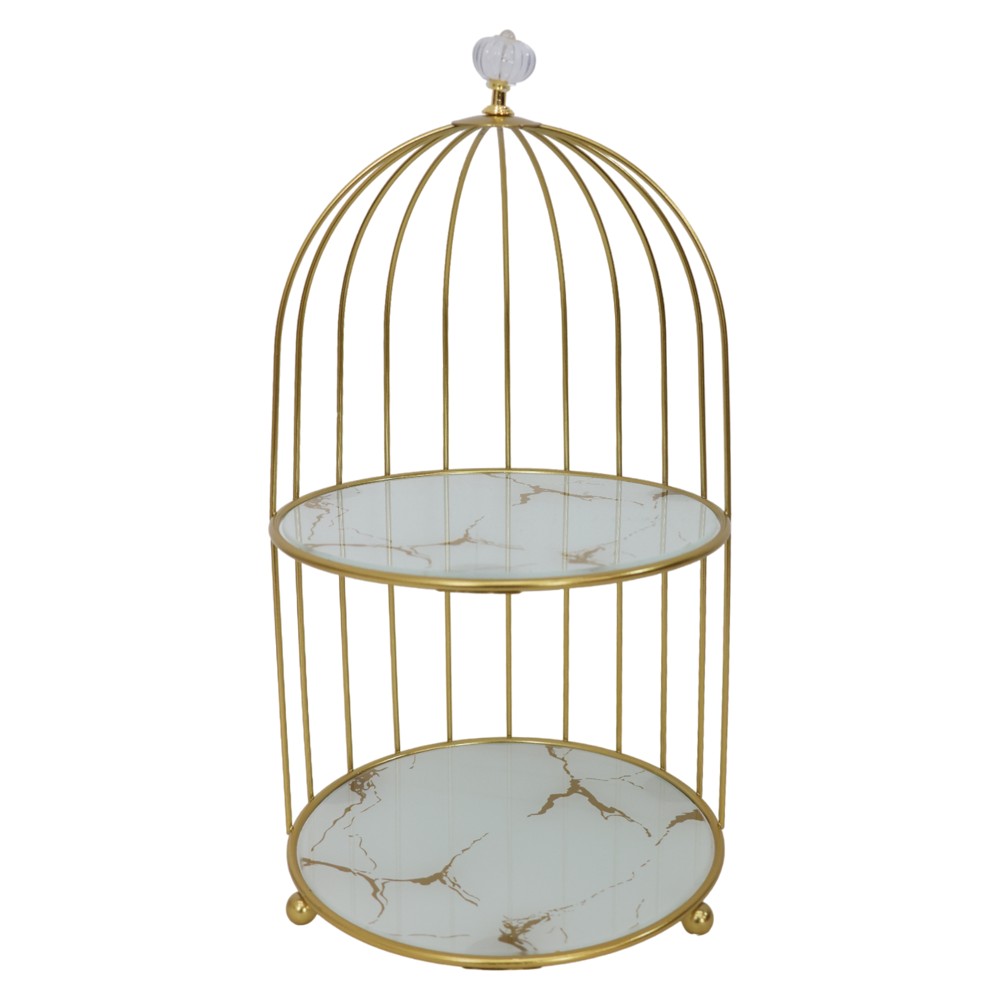 Stand with two floors, made of ceramic and metal in white color, with dimensions 20x34 cm. This product offers enough space to display and organize food in an attractive way.