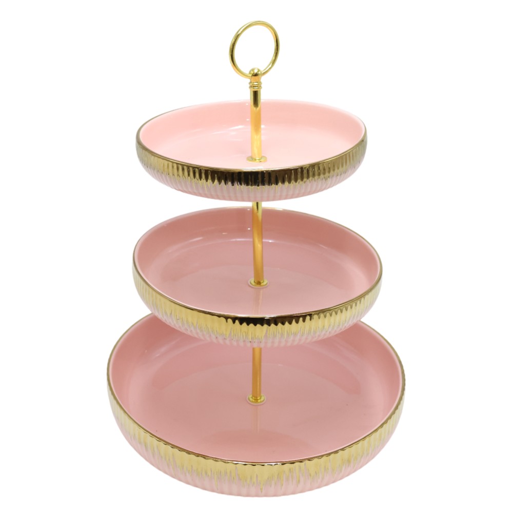 Stand with 3 layer, ceramic, pink, Dia.30 cm