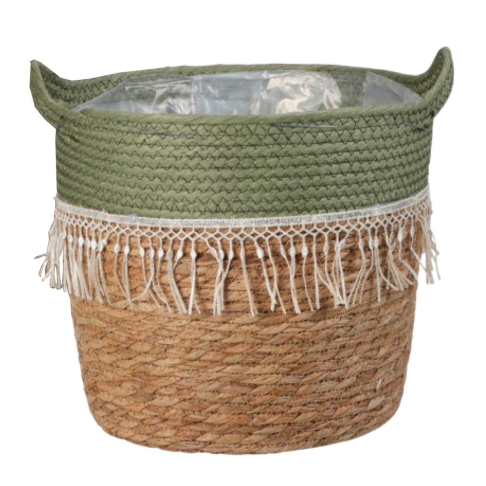 Storage basket, rattan, textile, green, brown, H22 x ø26 cm
