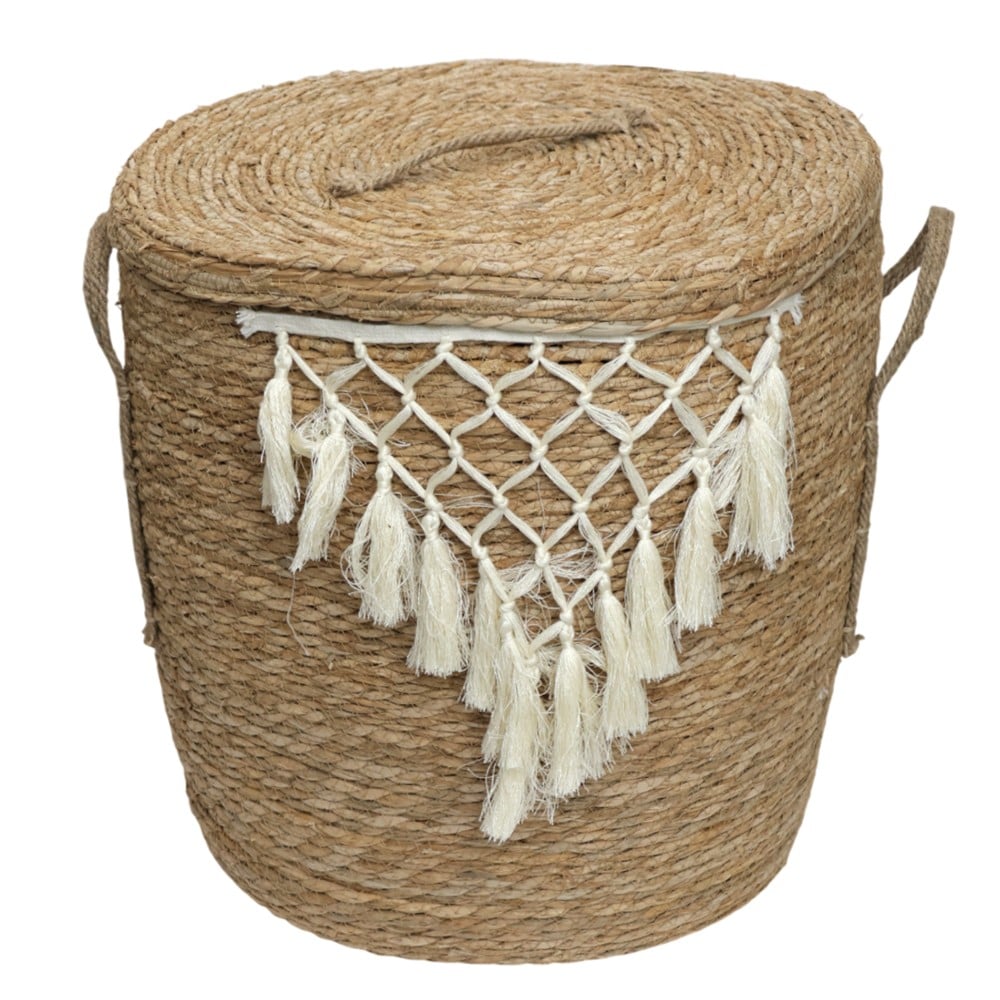 Crafted to the last detail and with boho style elements, this storage basket is the ideal choice for those looking for organized and clean spaces. It comes in dimensions Ø42xH44 cm and has the necessary capacity to keep all your items organized and clean. A product with high efficiency and a characteristic style that will look beautiful with any style of decoration. It comes in straw material and is very resistant with a high carrying capacity. The natural color gives it an aesthetic touch and with minimalist details that look very nice in the bathroom, bedroom or any other environment where you will use it.
