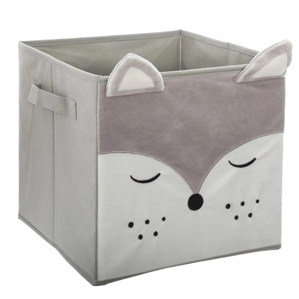 Storage box with fox design 29x29x29 cm. The box consists of polypropylene material and cardboard. The basket serves as storage for children's toys. Ideal for children's room.