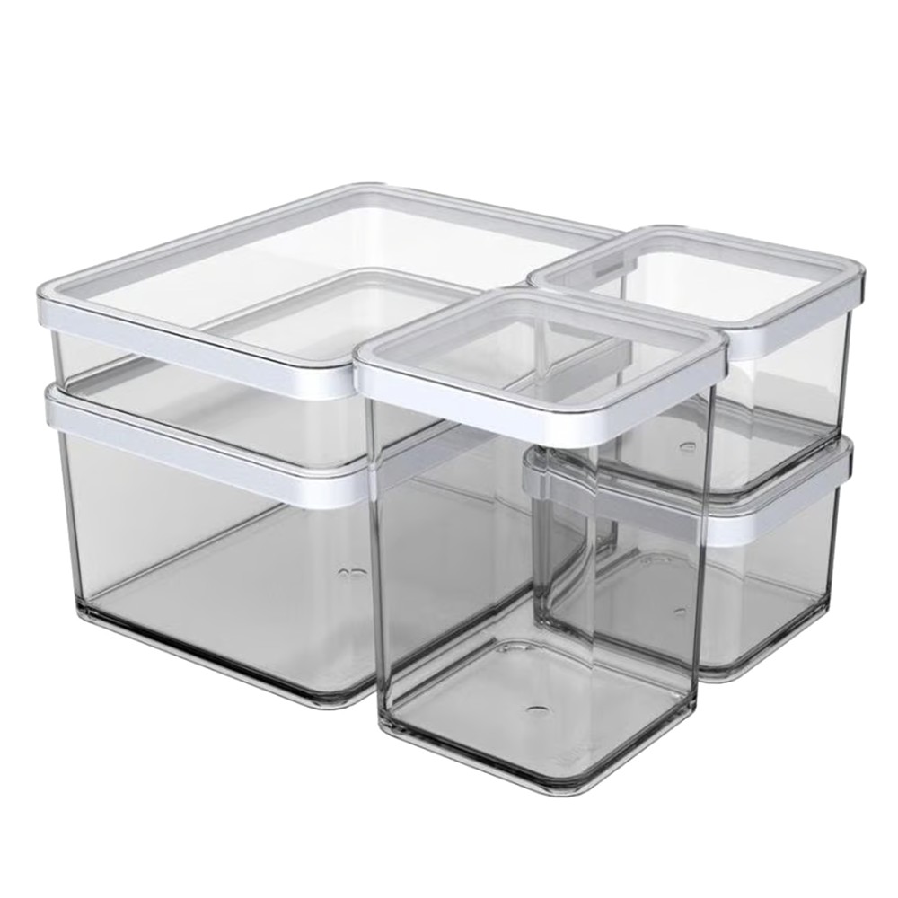 This practical 5-piece set of plastic storage containers is the ideal solution for organizing and storing your food efficiently. With a variety of sizes (2.25L, 1L, and 0.5L), these containers are perfect for storing everything from soups and salads to fruits and vegetables. The durable, transparent plastic allows you to see the contents at a glance. The set includes two 0.5L containers (10x10x7.2cm), one 1L container (10x10x14.2cm), one 1L container (20x15x4.8cm), and one 2.25L container (20x15x9.6cm).