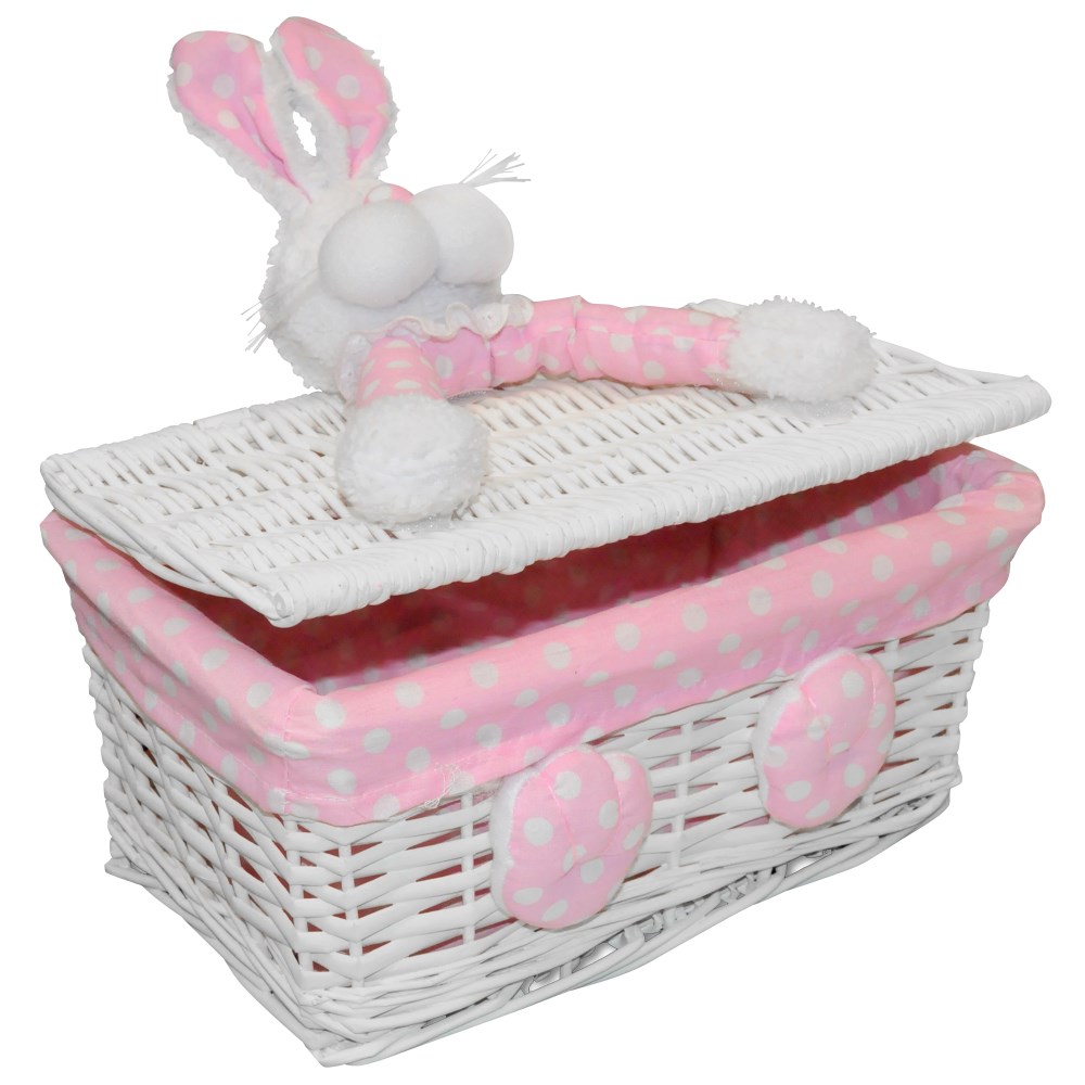 Storage box, willow and textile, pink/white, 22x14xH9 cm