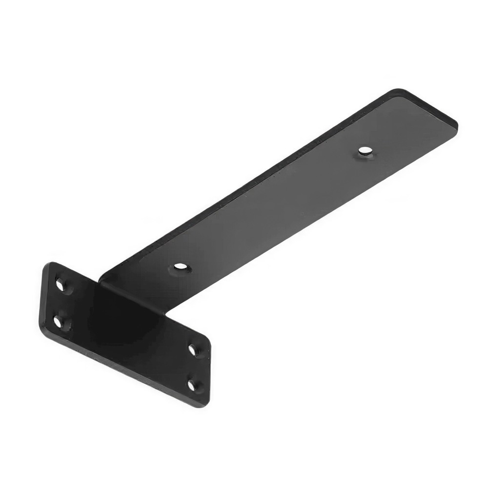 Shelf support made of steel material, in black color, which serves as a decorative and functional accessory for different environments. The component material is durable against use, heavy weights, rust or corrosion. It is used for wall mounting of self-supporting shelves, but can also find other applications in professional and non-professional environments.