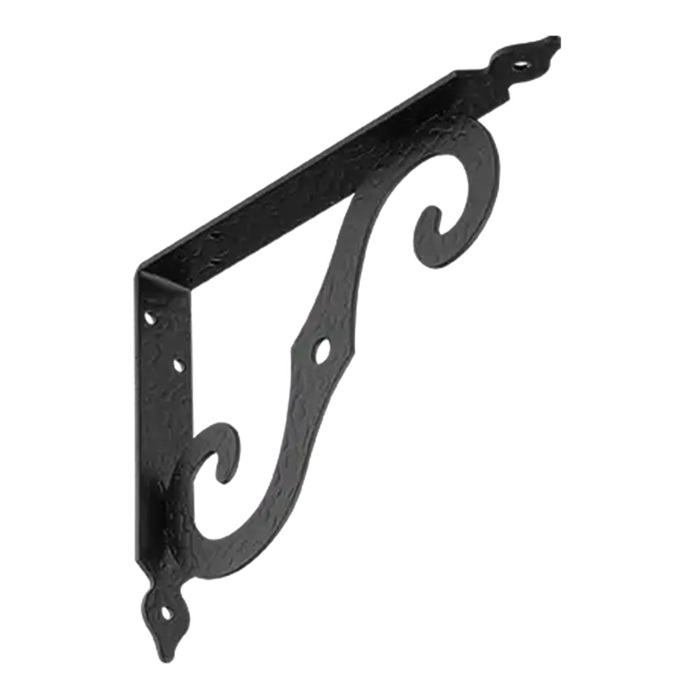 Shelf support made of steel material, in black color, which serves as a decorative and functional accessory for different environments. The component material is durable against use, heavy weights, rust or corrosion. It is used for wall mounting of self-supporting shelves, but can also find other applications in professional and non-professional environments.
