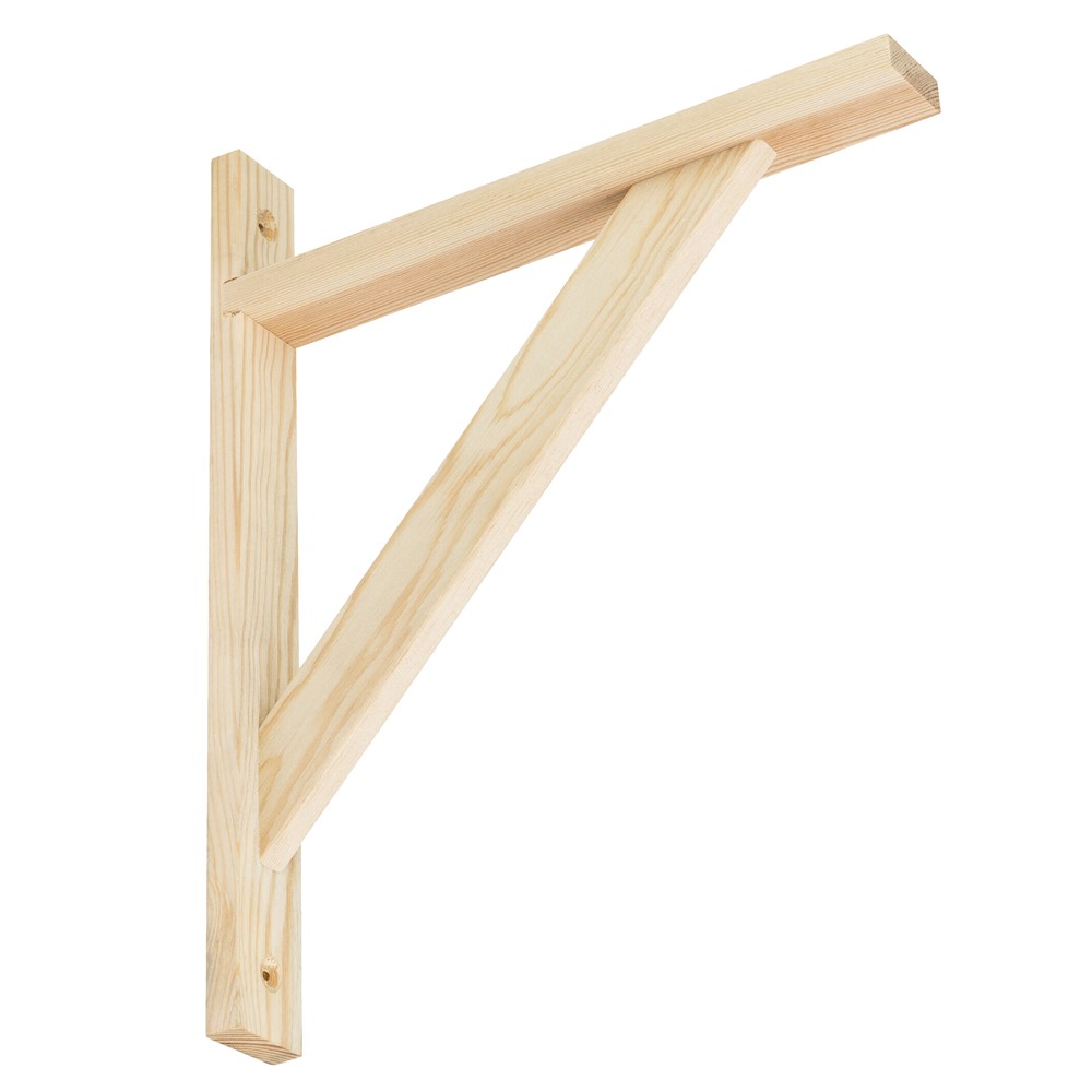 Reinforced plywood bracket, made of pine wood material, in natural color, with dimensions of 28x23 cm, which serves as a functional accessory for different environments. The constituet material is resistant to use and heavy weights, as well as it can be easily coated with any colour of paint, varnish or wood stain. It is used for wall mounting of self-supporting shelves, made of the same material, and it can find application in professional and non-professional environments.