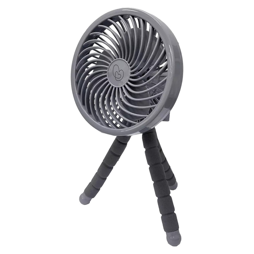 Twist legs & grip to attach. Protective fins (caged) cover. Fit to strollers, cots, tables, desks etc. Great for adults too. Battery operated (2 x AA required - batteries not included)