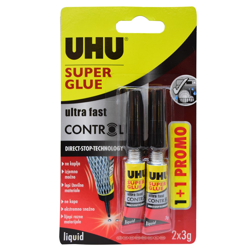 UHU universal adhesive extra, non-dripping, crystal clear, unique adhesive, universal for clean adhesion. A gel which is ideal for use on vertical surfaces. The glued part remains elastic and does not wrinkle. Universal - wood glue, plexiglass, metal, glass, ceramic, leather, fabrics, cardboard, paper. Not suitable for PE, PP. For a good adhesion the surfaces should be dry, without dust or grease.