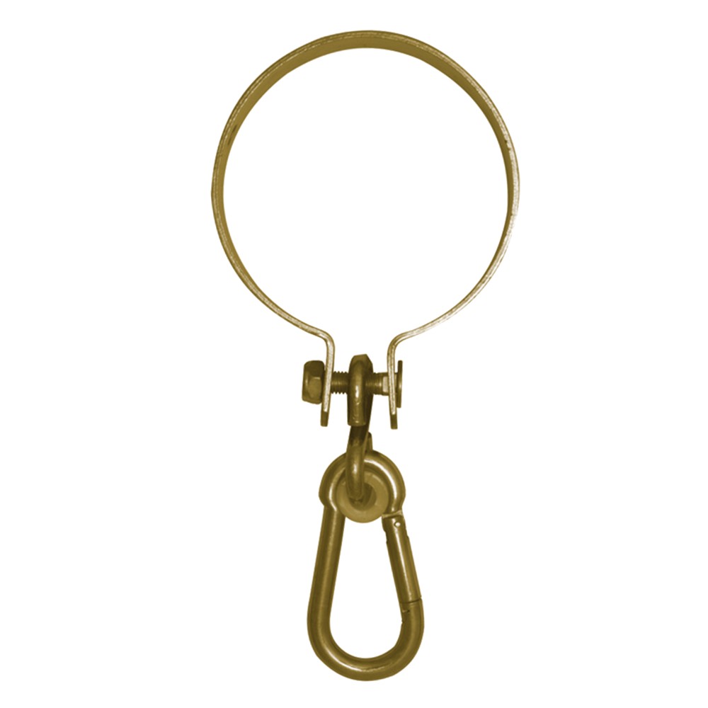 Fixing for mounting swings to a wooden round beam. The holder with a carabiner is designed for mounting to round beams with a maximum diameter of 12 cm. The holder should be installed in pairs.