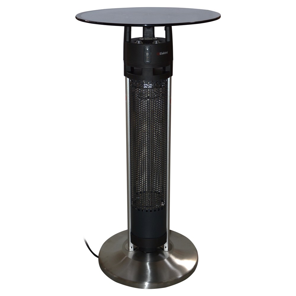 Electric heating table with a power of 1350 - 1600 W. The table has a height of 95 cm and a diameter of 50 cm. The material of the body is metal, the upper part of the table is glass.