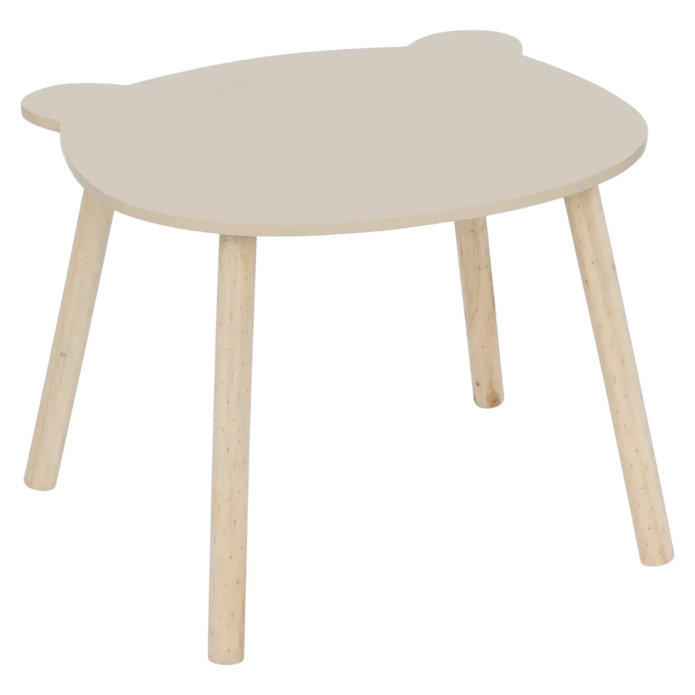 Table for children in dimensions 53x48x42.5 cm. Made of MDF material. Suitable for use in children's room. Its shape comes in a Teddy shape with rounded sides for child protection. The table is equipped with 4 legs for better stability.